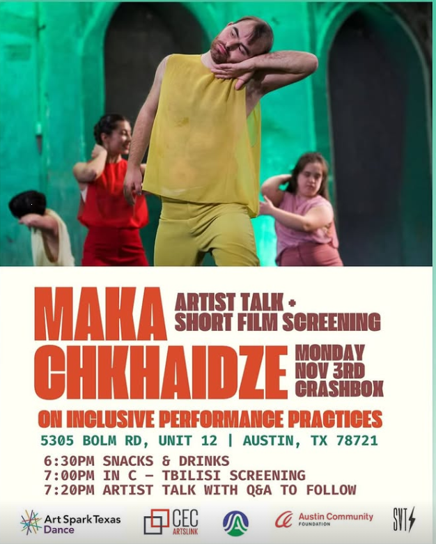 Following her successful Elements Dance class in Austin, Maka continued building connections with the local community through a second impactful event. On November 3rd, Salvage Vanguard Theater, a non-profit experimental theater and performance art company, hosted an evening of talks and short film screenings at Crashbox, focusing on inclusive performance practices.