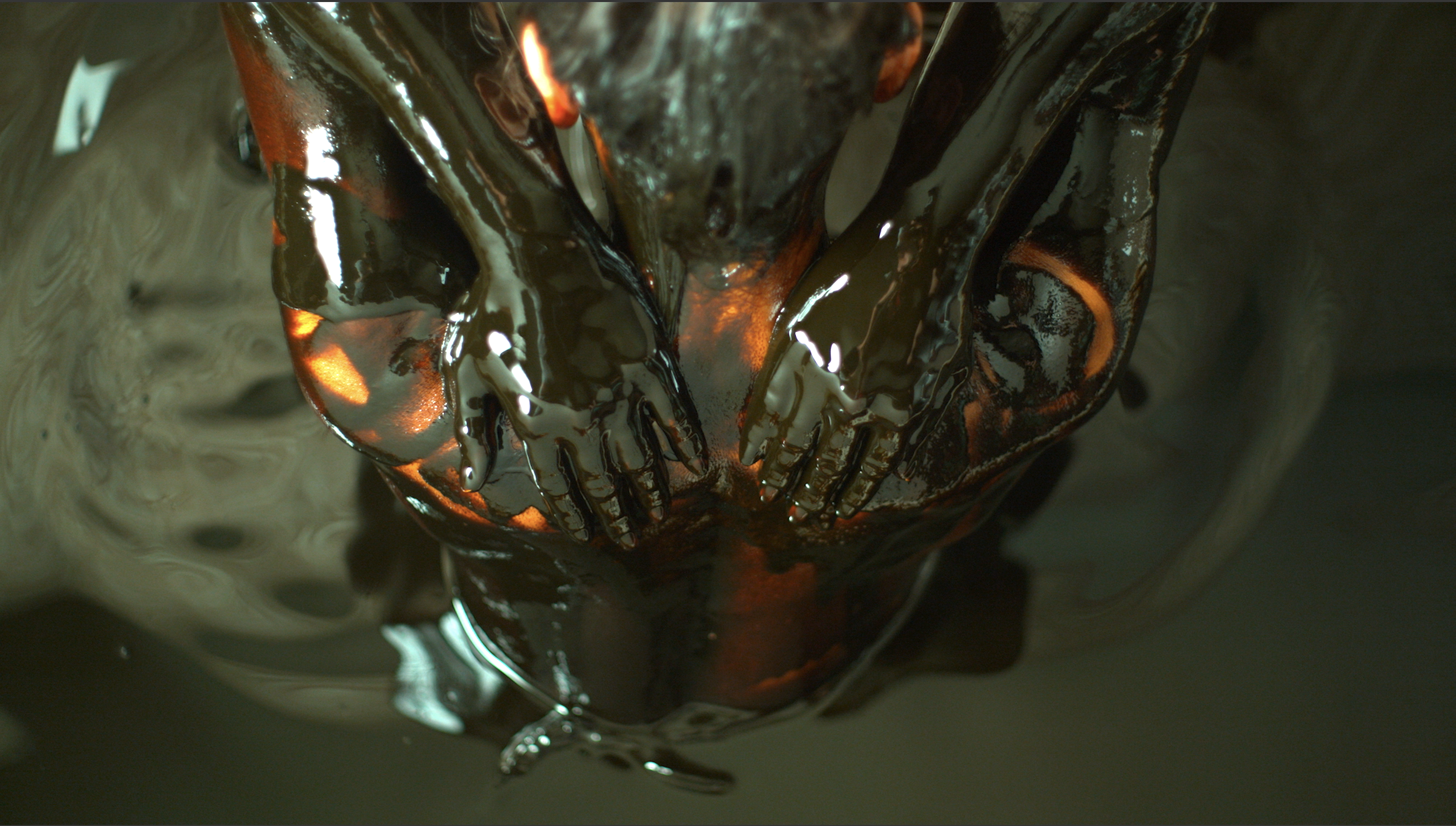 Jessica Segall, USA, Art Prospect Residency Fellow 2022. Film still from Human Energy. During her Residency at Salaam Cinema in Azerbaijan, Jessica focused on our addictive and intimate relationship with oil. Azerbaijan, one of the most prolific oil producing countries, has a unique culture of using crude oil as a medicinal bath and salve. The film considers oil’s toxic legacy as well as its materiality as a medical salve.